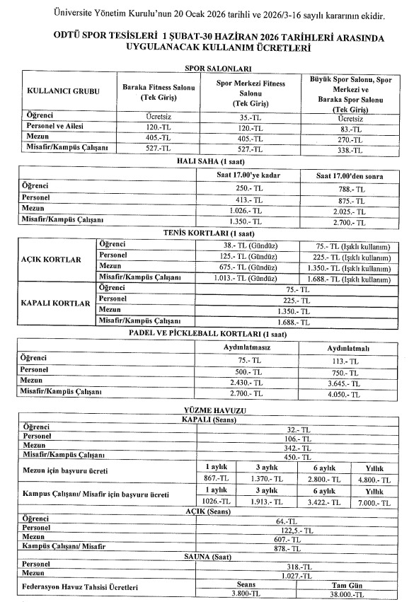 Spor Tesisleri Kullanım Ücretleri